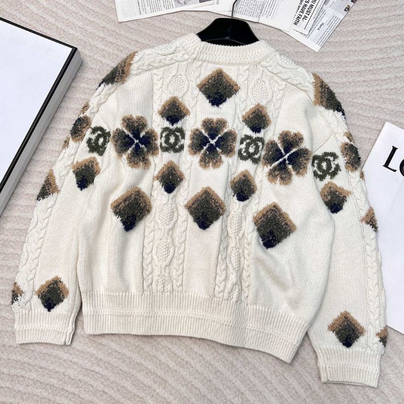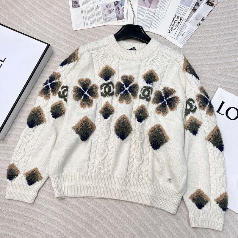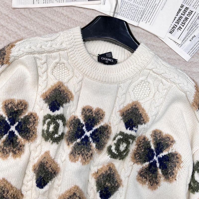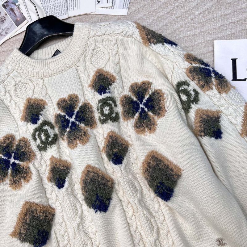 Chanel Skiing Series Four Leaf Clover Heart Wool Sweater